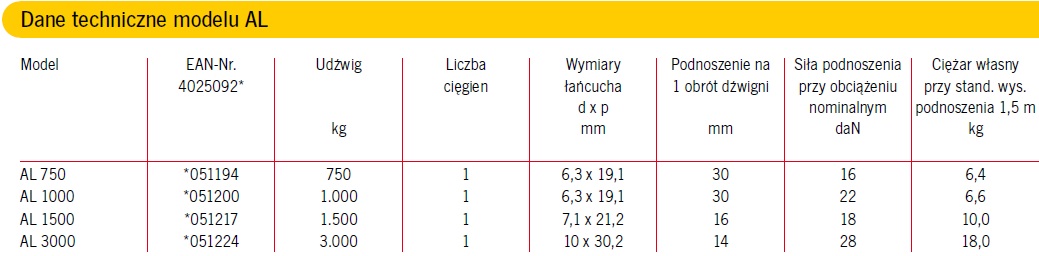 AL - uniewersalny wciągnik łańcuchowy dźwigniowy