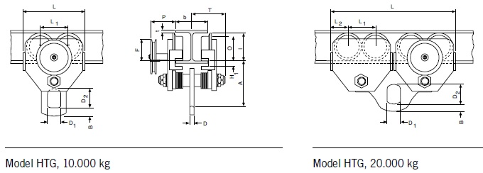 Cechuje się optymalnymi właściwościami eksploatacyjnymi. Koła jezdne są wyposażone w łożyska kulkowe i mają profil dostosowany do belek jezdnych o skośnych i równoległych półkach.