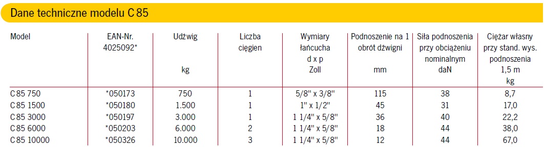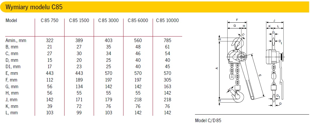 Pul-Lift C85 - wciągnik łańcuchowy dźwigniowy z łańcuchem rolkowym