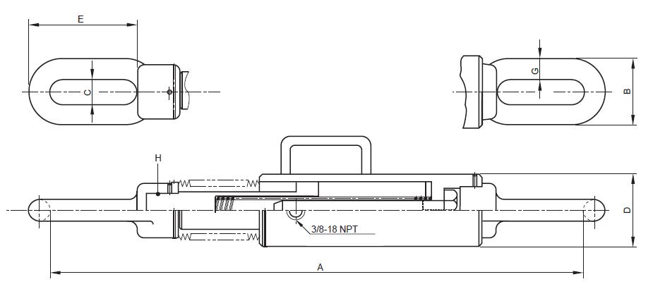 YPL-51/150 - cylinder ściagający, nośność 51t, skok 150mm